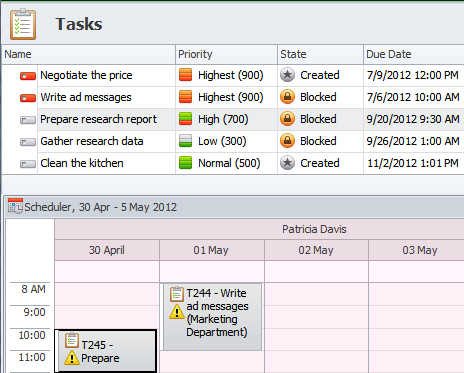 CentriQS Task Scheduling Solution CentriQS users can choose the most convenient way to schedule tasks. If most of your tasks require scheduling, you can add new tasks directly in the Scheduler view. If you schedule tasks from task list, you can drag'n'drop created tasks to the Scheduler panel. If you set task start and finish dates and time, you can do this on the Schedule tab of task detail view. Also CentriQS supports "splitting task" into multiple schedule items in case you plan to break task into parts and schedule them at different time and days of the week. |