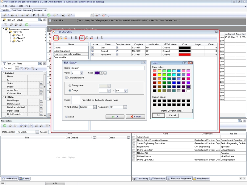 Specific software application helps companies to establish very workflows for each of departments. If you have such needs, VIP Task Manager can assist you in creating and implementing your specific task statuses, using custom workflow feature. The software allows to customize your task statuses and to make processes smooth and efficient.