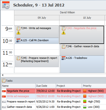 | You are able to design templates the Tasks view through creating custom layout of columns to describe attributes of your tasks as well as through appropriate grouping, sorting and filtering your records. This is similar to Excel weekly task planner – when you use MS Excel application to list and describe your tasks on a spreadsheet. MS Excel (because of many reasons related to its usability and peculiarities) – cannot be considered as an effective weekly task planner (for example, Excel-based template cannot be shared by several users concurrently). Besides mentioned Task List and Task Tree views, another essential template of CentriQS is regime of Calendar (Scheduler).